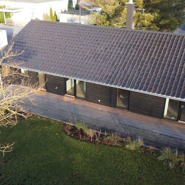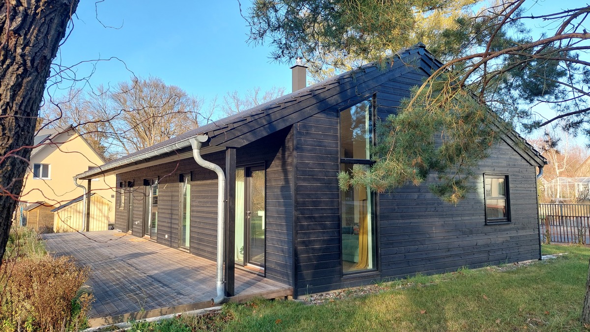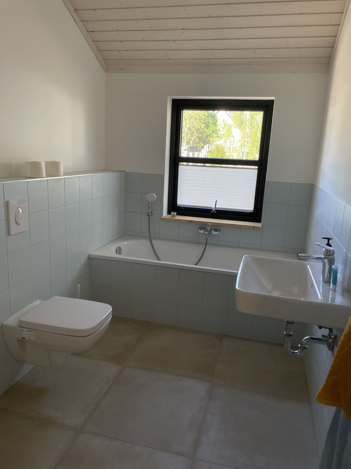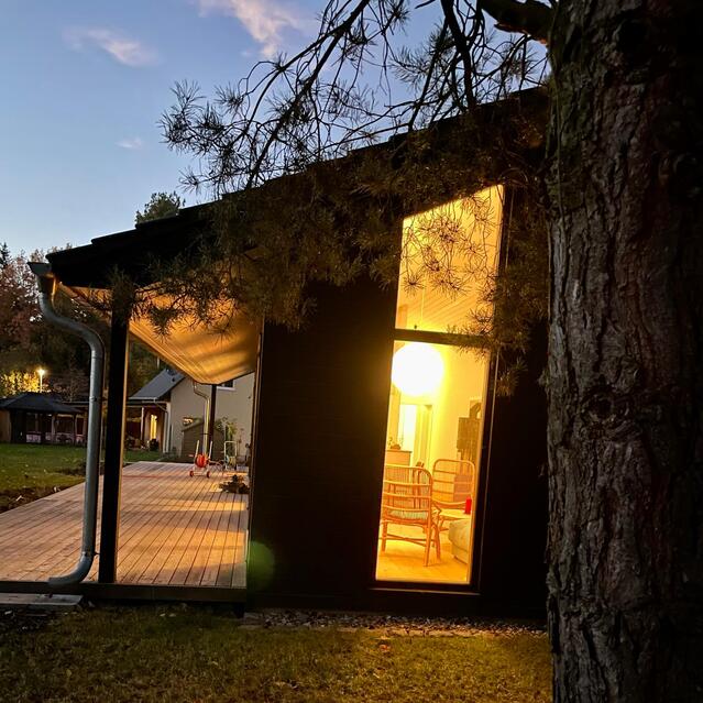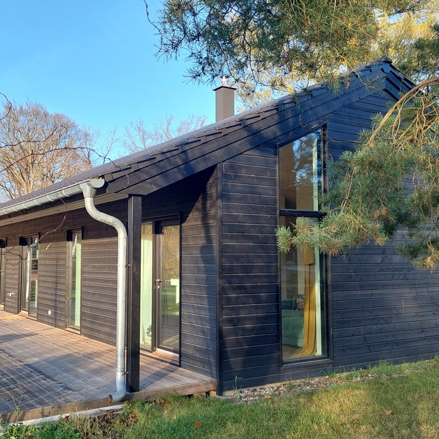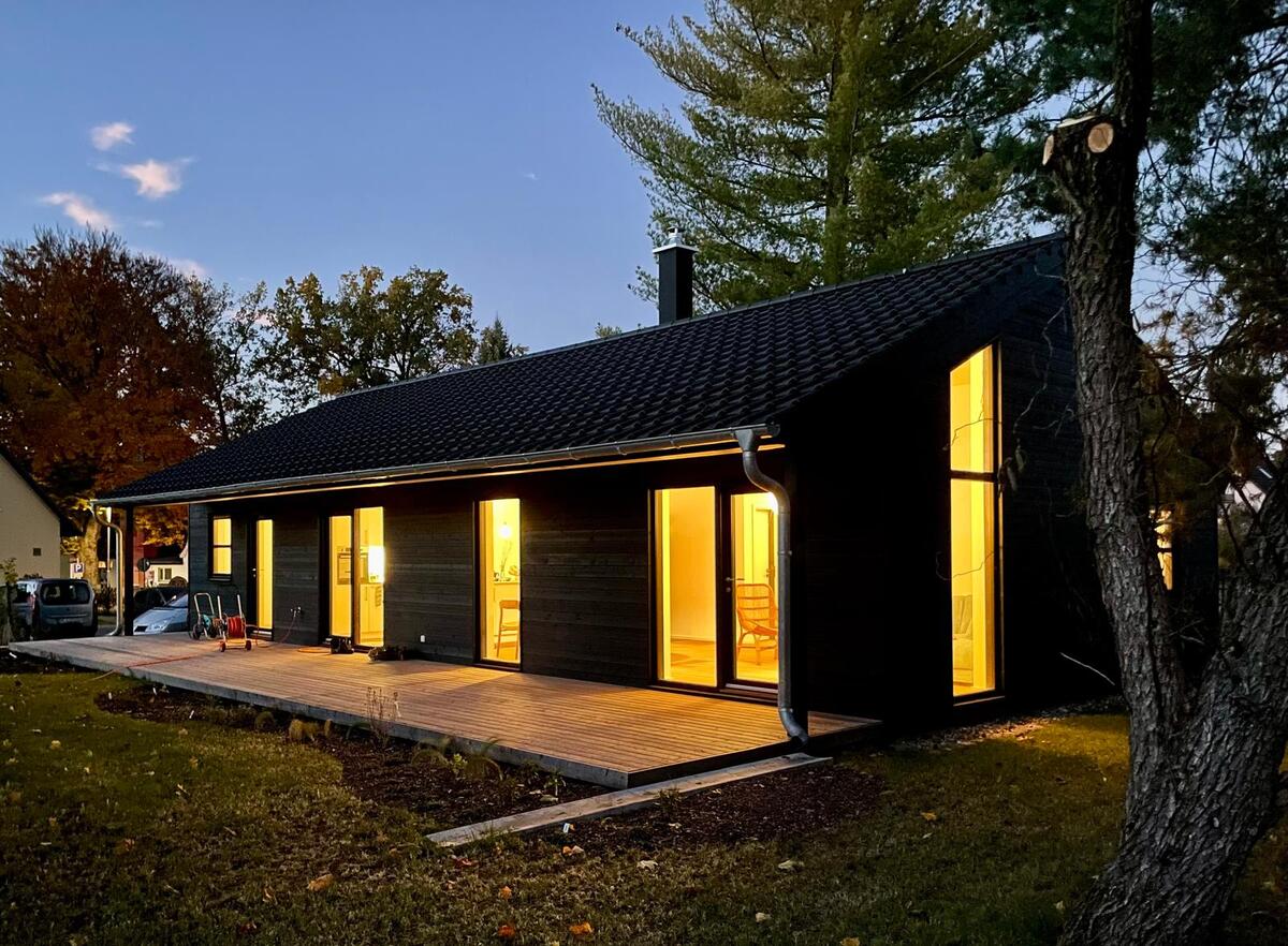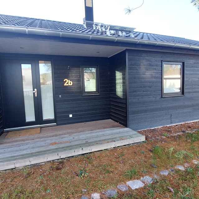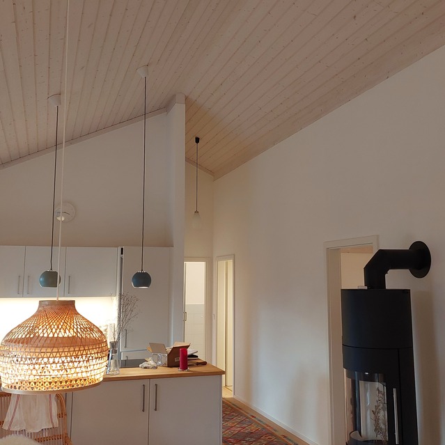 | Objektbeschreibung | Dieses freistehende, moderne und neuwertige Einfamilienhaus im Baustil eines Bungalows mit Terrasse aus dem Jahre 2023 wurde in Holzständerbauweise auf dem 776 m² großem Grundstück hergestellt. Der individuelle Entwurf des Eigentümers wurde hier vom bekannten Holzhausanbieter EBK Dänemark umgesetzt. Mit dieser Entscheidung wurde auf Erfahrung, bestmögliche Qualität der Materialien und der bewährten Bauausführung gesetzt. Hiervon werden auch künftige Eigentümer profitieren. Auf höchstem Niveau – alles durchdacht – vereint es doch mit seiner hochwertigen Ausstattung und guter Raumaufteilung ein modernes Wohnen mit einem angenehmen Raumgefühl. Durch den Hauseingang gelangt man in den praktisch gestalteten Flur. Die ca. 91 m² Wohnfläche in einer Ebene teilen sich wie folgt auf: Durch die erste Tür rechts gelangt man in das Gäste WC. Gegenüber befindet sich das Kinderzimmer. Über den offen gestalteten Bereich gelangt man in das Arbeitszimmer und den Hauswirtschaftsraum. Hier sind die Hausanschlüsse, der Waschmaschinenanschluss, die Heizung mit 300 l-Warmwasserspeicher und der Sicherungs- und Zählerkasten untergebracht. Wie jedes Zimmer im Haus hat auch der HWR ein Fenster. Herzstück des Hauses ist das Wohnzimmer mit Essbereich, offener Küche und über Dreh-Kipp-türen Zugang zur Terrasse. Am Ende des Flures gelangen Sie in das halbhoch, dezent und modern geflieste Badezimmer mit Tageslicht, modernem Waschtisch, ebenerdiger Dusche mit Sicherheitsglaswand und Handtuchtrockner, wandhängendem WC und Badewanne. Die Bodenfliesen sind als Großformat im Kreuzverband verlegt. Wie im ganzen Haus erzeugt die Fußbodenheizung eine angenehme Wärme. |